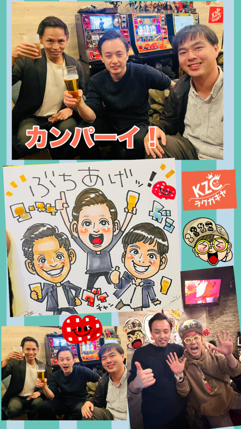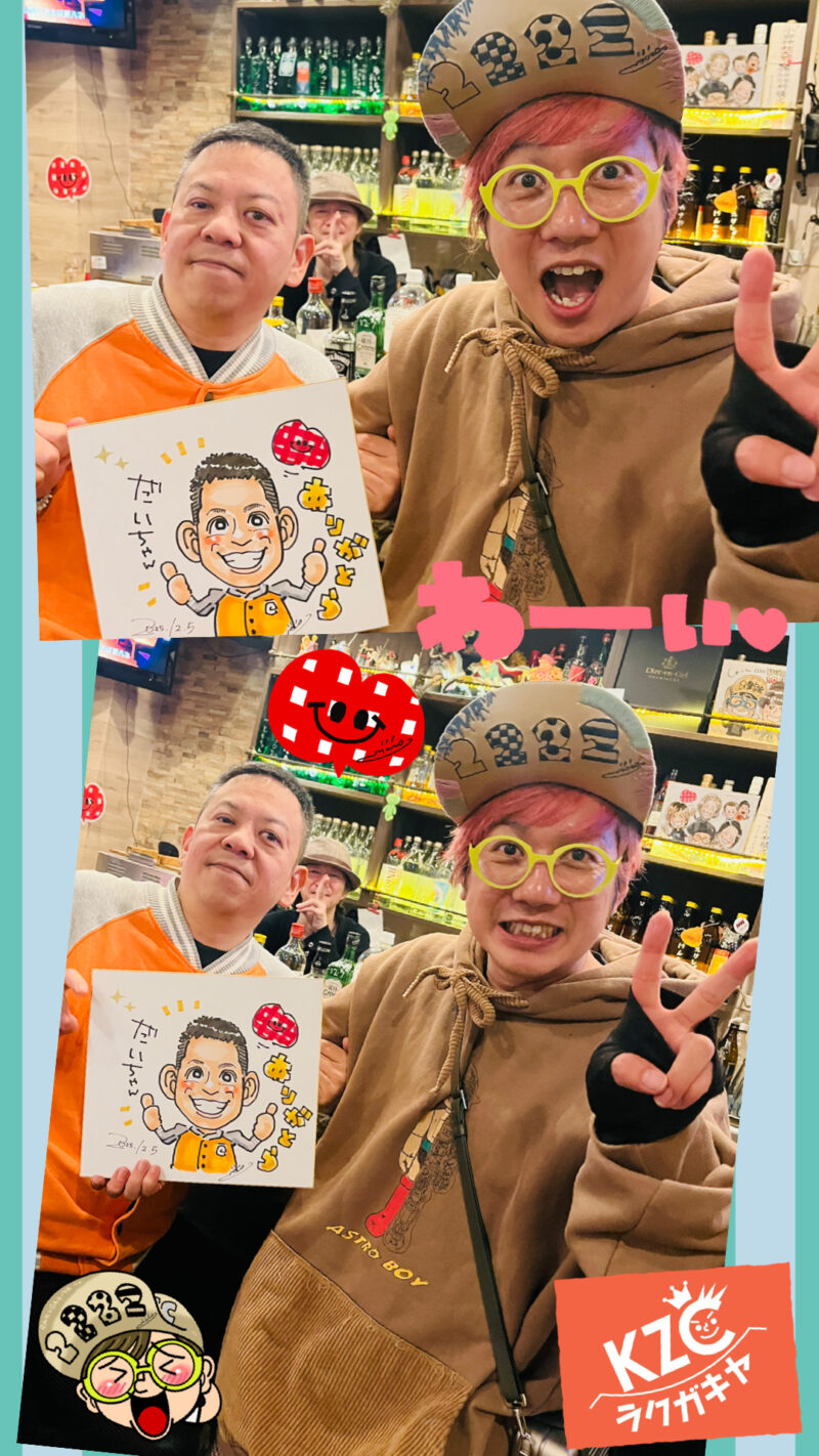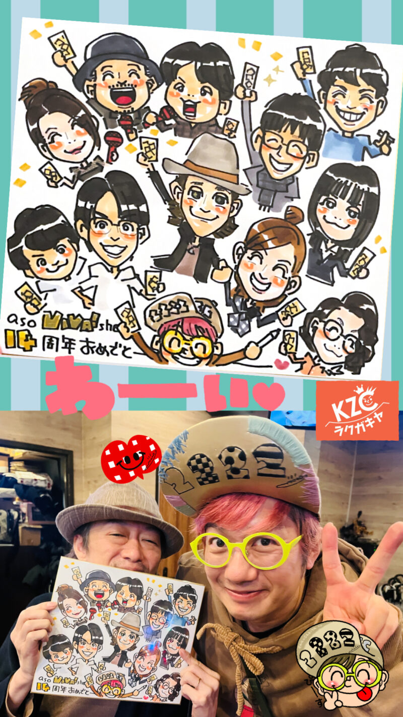 似顔絵屋さんになったばかりの頃、右も左もわからないまま東京に出てきたマコをお店でアルバイトさせてくれながら似顔絵描かせてくれた大恩人! なにが嬉しいって、14年たった今でも変わらずに必要としてくれること…ッ♡ 名刺や看板、ステッカー、大切なお客様へのプレゼント…10周年から毎年お店に呼んでくれてて…「今年も!?」って驚くと「だってみんな喜んでくれるけん」って。( ;♡; )うれすぃ…