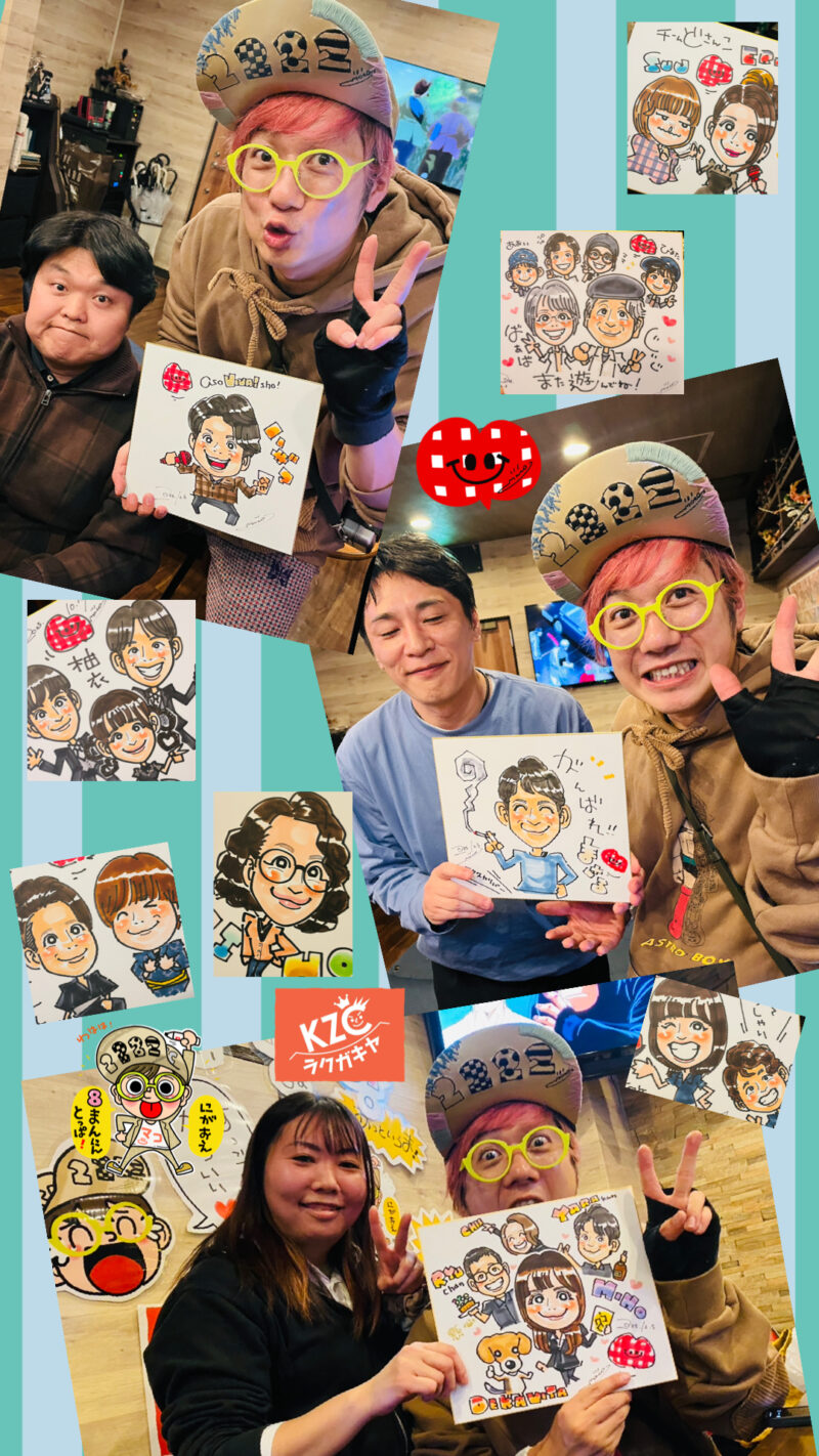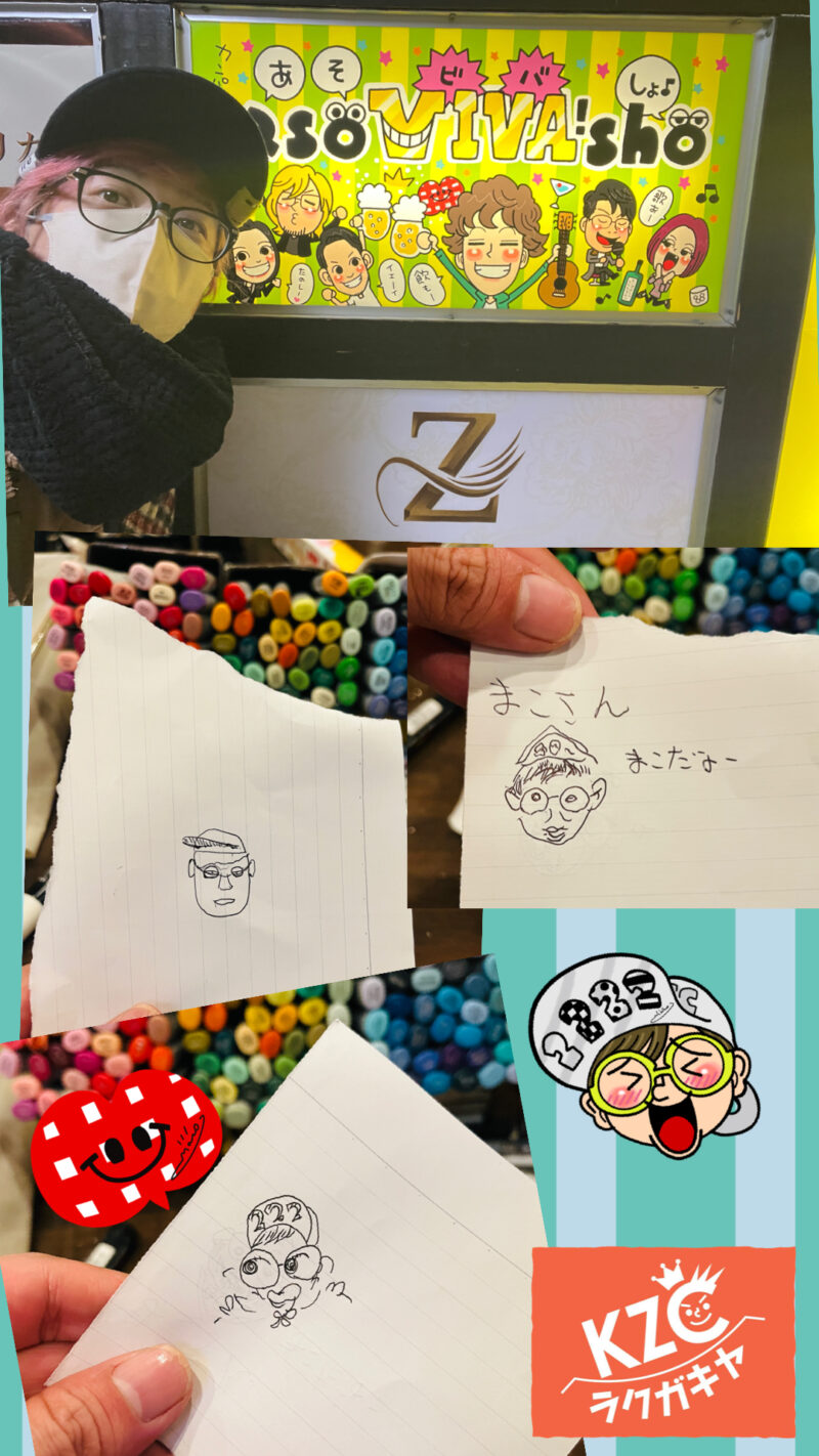 お客さんたちにマコも描いてもらっちゃった🤣みんなタッチが違って似顔絵ってほんとおもしろい!