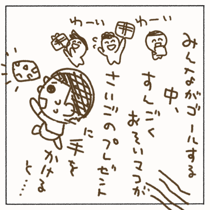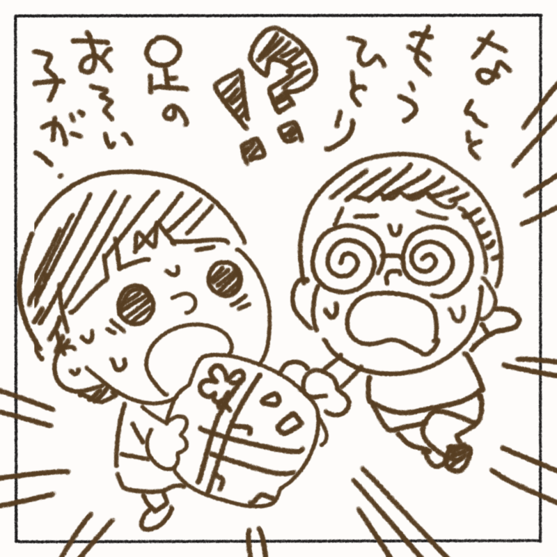 この漫画を読んだおかん曰く、プレゼントはちゃんと全部並んでて一番端にあったからふたりが気付かなかっただけだと。