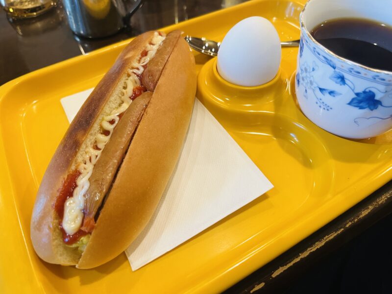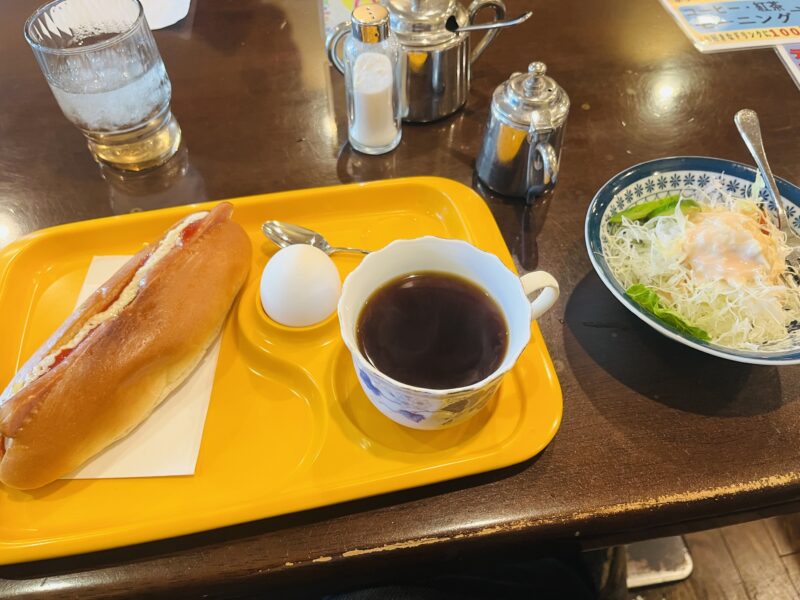 ゆでたまごが半熟で最高だったからおかわりしちゃったモーニング二個目。サラダ付き(+50えん)