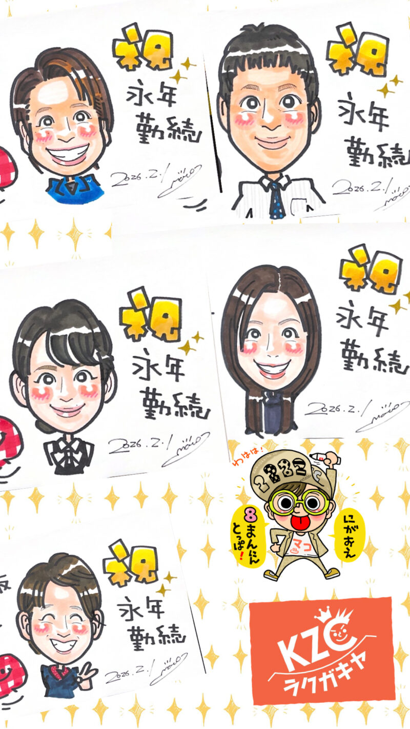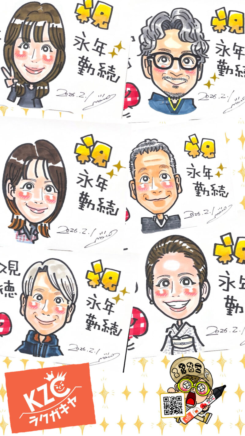 永年勤続のお祝いに、似顔絵選んでいただいてます!