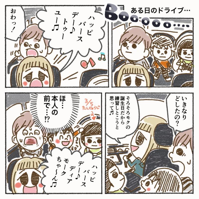 これ実はまだチモちゃん(長女)がいない時のエピソード!2年前かなぁ。ほんとにいきなりで大爆笑だったけど マンガ的には困惑してる感じのオチとしました!